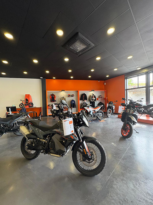 Notre équipe de passionnés vous accueille dans une concession moderne, entièrement dédiée à l’univers KTM :